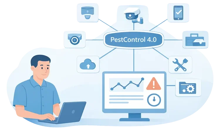 PestControl 4.0 ist die zentrale Schnittstelle, die Software und Hardware Anbieter der Schädlingsbekämpfung in einem System zusammenführt. So bleiben Qualitätsstandards erhalten, du brauchst nur noch eine Integration statt vieler Einzellösungen, und die Anbindung erfolgt schnell mit minimalem Aufwand.