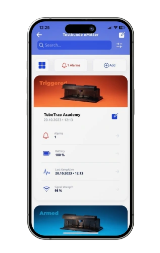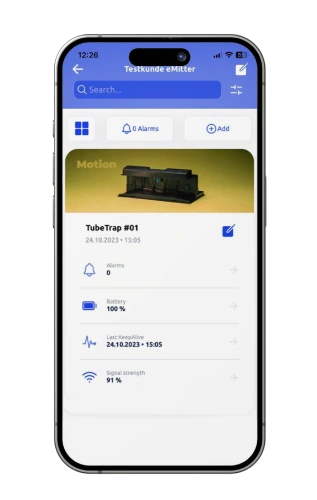 Unsere Emitter App wird seit über 10 Jahren in über 30 Ländern von führenden Profis und Endkunden benutzt und Sie können die Tubetrap mit der App in unter 5 Sekunden installieren. Installation, Auslösungs-Kontrolle, Fang-Verwaltung, Bilder-Management, gratis Kundenlogins, Temperatur-Überwachung und vieles mehr können Sie in unserer App sowie in unserem Online Portal steuern. Zum Beispiel wird die Akkukapazität Ihnen direkt in der Emitter App oder im Online-Portal angezeigt und sollte der Akku unter 25% fallen, bekommen Sie automatisch für die Planung eine Email zugeschickt. Natürlich können Sie sich auch alle Ihre Tubetraps in der Google Map ansehen.
