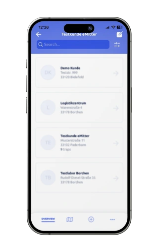 In der Übersicht können Sie Kunden-Standorte managen sowie alle Emitter Produkte einfach und unkompliziert anlegen, ändern und verwalten.
