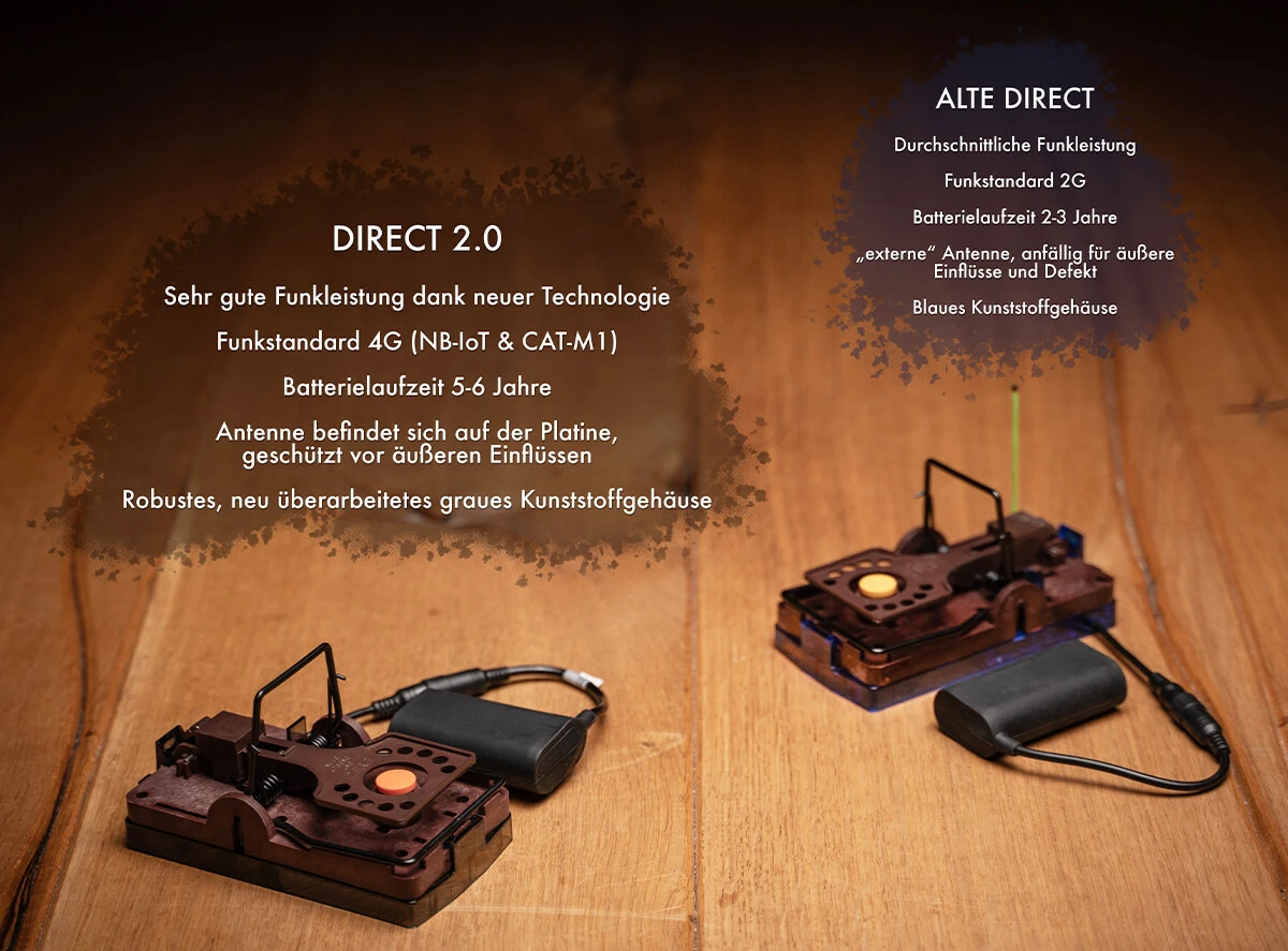 Emitter® Direct is a stand-alone, digital snap trap solution with an integrated SIM card. It uses an app or online portal to reliably report the status of your trap – including catch, empty catch or release – around the clock and over long distances.